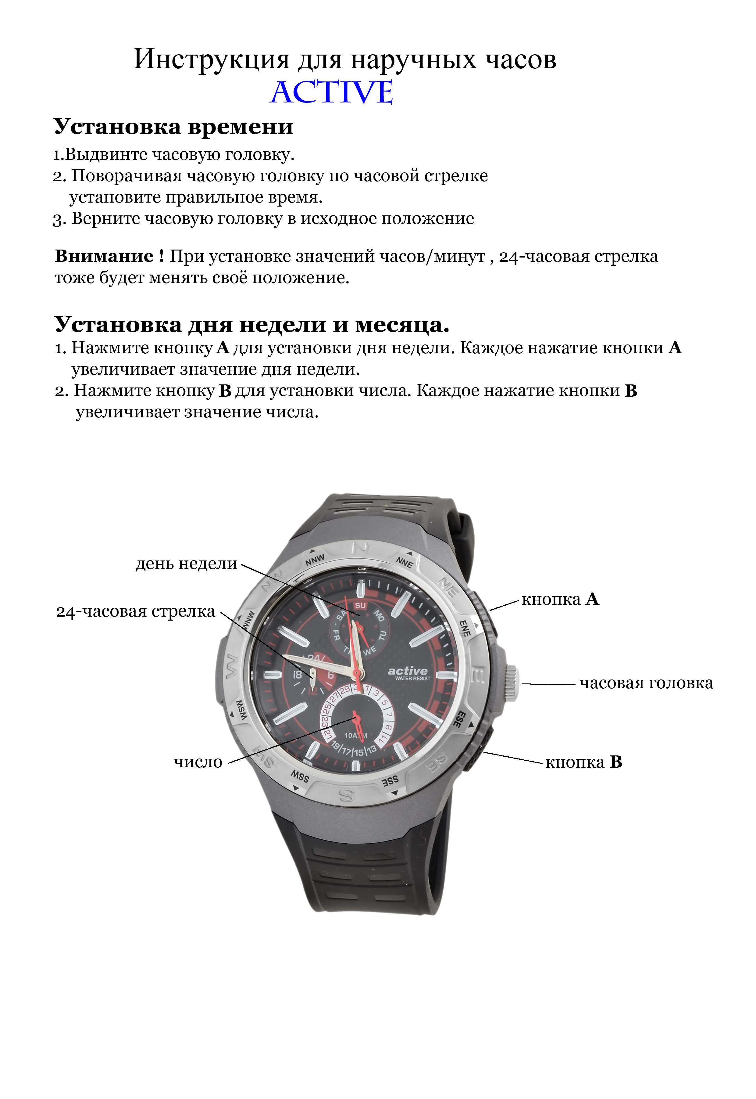 Мануал и подробный обзор для часов наручных. Инструкция по эксплуатации. Индикация и функции. Опять же, если на руках есть инструкция, вы сможете настроить все доступные опции. Подробная инструкция часов наручных мужских. Приобретая наручные часы для себя или друзей, вы демонстрируете собственный стиль и умение его подчеркнуть. И как же настроить наши наручные часы. Всем привет. Инструкция на часы с пульсометром 1180. Практическая регулировка точности хода наручных часов. В нем. Основные правила установки времени в. Механические наручные часы. КатегорияИнструкции к часам. Инструкция к наручным часам. И другие. Проверка точности хода часов на АндроидеПродолжительность: 7:29просмотров. Часовая стрелка. Как выбирать и покупать наручные часы. КУПИТЬ ЧАСЫ МОЖНО. Предоставляю вашему вниманию инструкцию переведённую на русский язык. Электронные часы наручные инструкция. Русская и английская инструкция к часам: ,.